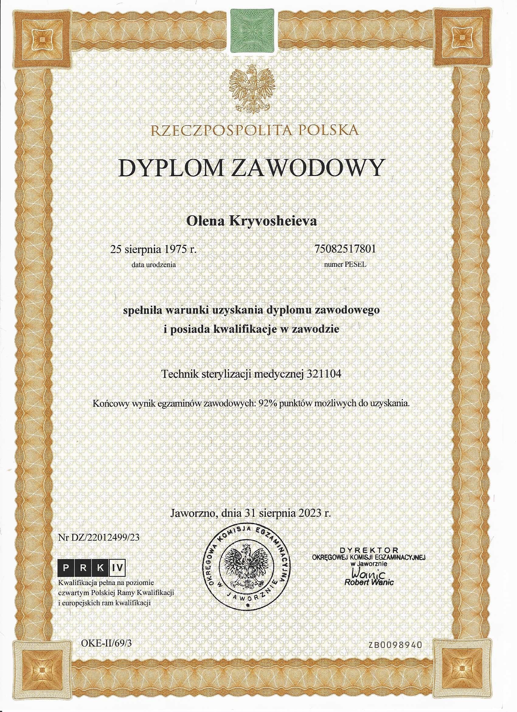 W naszej placówce wykonuje zabiegi z zakresu podologii, ze szczególnym uwzględnieniem opieki nad osobami starszymi. Nadzoruje również prawidłowy przebieg procesów dezynfekcji i sterylizacji, dbając o najwyższe standardy higieny i bezpieczeństwa.