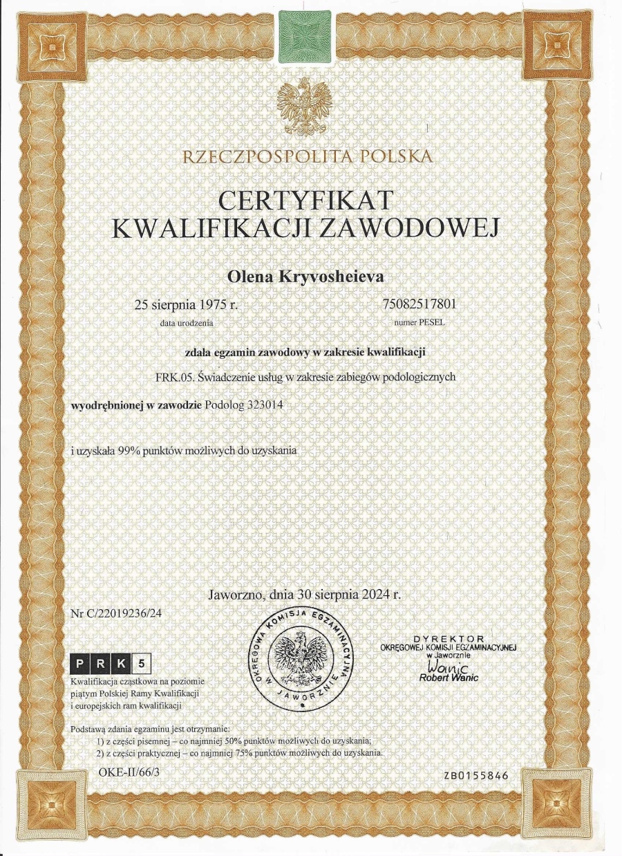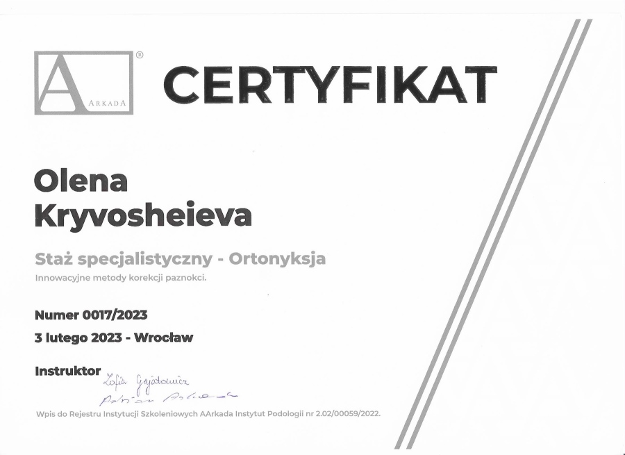 Nastawiona na poszerzenie wiedzy i kompetencji zawodowych, koncentrując się na terapii wrastających paznokci oraz leczeniu dolegliwości podologicznych związanych z wiekiem.